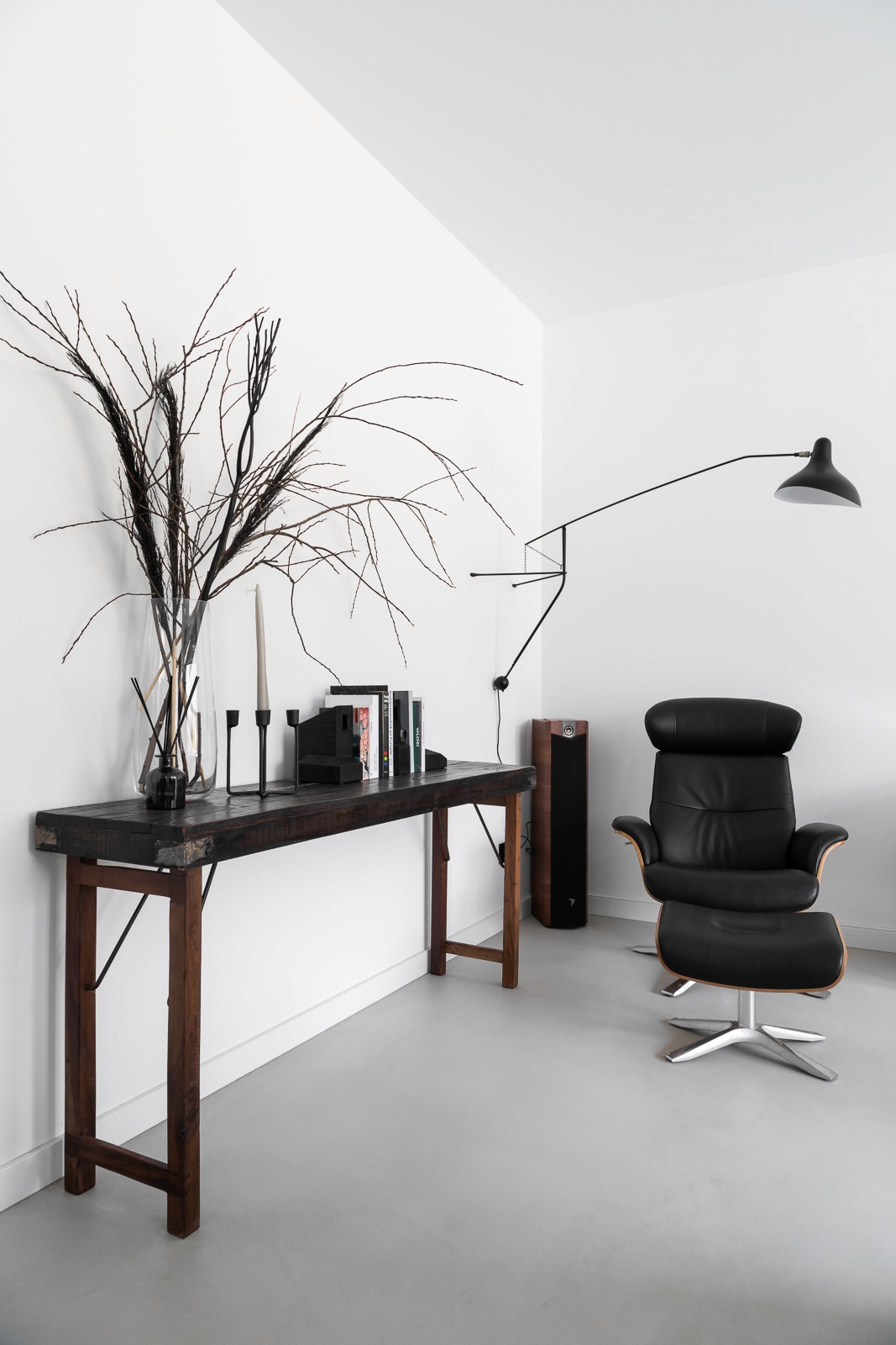 Minimalistyczne wnętrze, z miejscem do pracy i przestrzenią na relaks